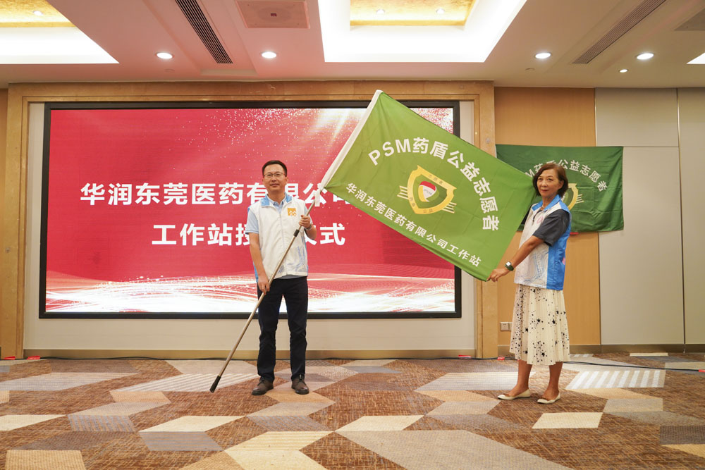 隨后,PSM廣東總站吳新榮總站長為華潤東莞醫(yī)藥劉先鋒總經(jīng)理授旗,與會專家學(xué)者為志愿者頒發(fā)徽章并帶領(lǐng)全體志愿者宣讀誓詞。