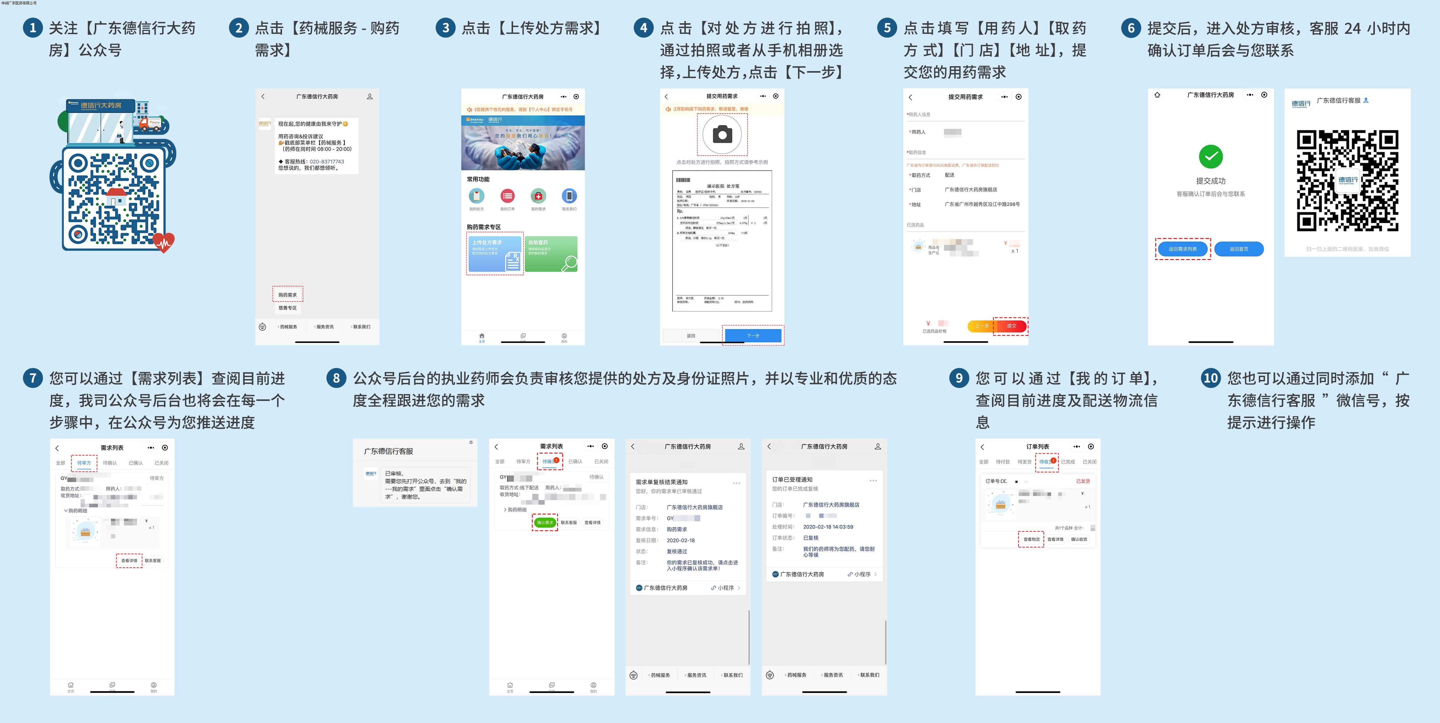 在這段特殊期間,廣東德信行大藥房門店仍然堅持營業(yè),為患者提供咨詢、購藥、慈善援助等服務。為減少患者集聚產生的感染風險,您可以通過我司公眾號提交您的購藥需求,普通藥品由執(zhí)業(yè)藥師根據(jù)患者處方需求審核通過后,采取配送到家的方式,讓您足不出戶可以享受到購藥服務。冷鏈藥品由于對溫度有嚴格的管控要求,為了患者的用藥安全出發(fā),同時保證冷鏈藥品質量安全,該類藥品建議您到店自提。