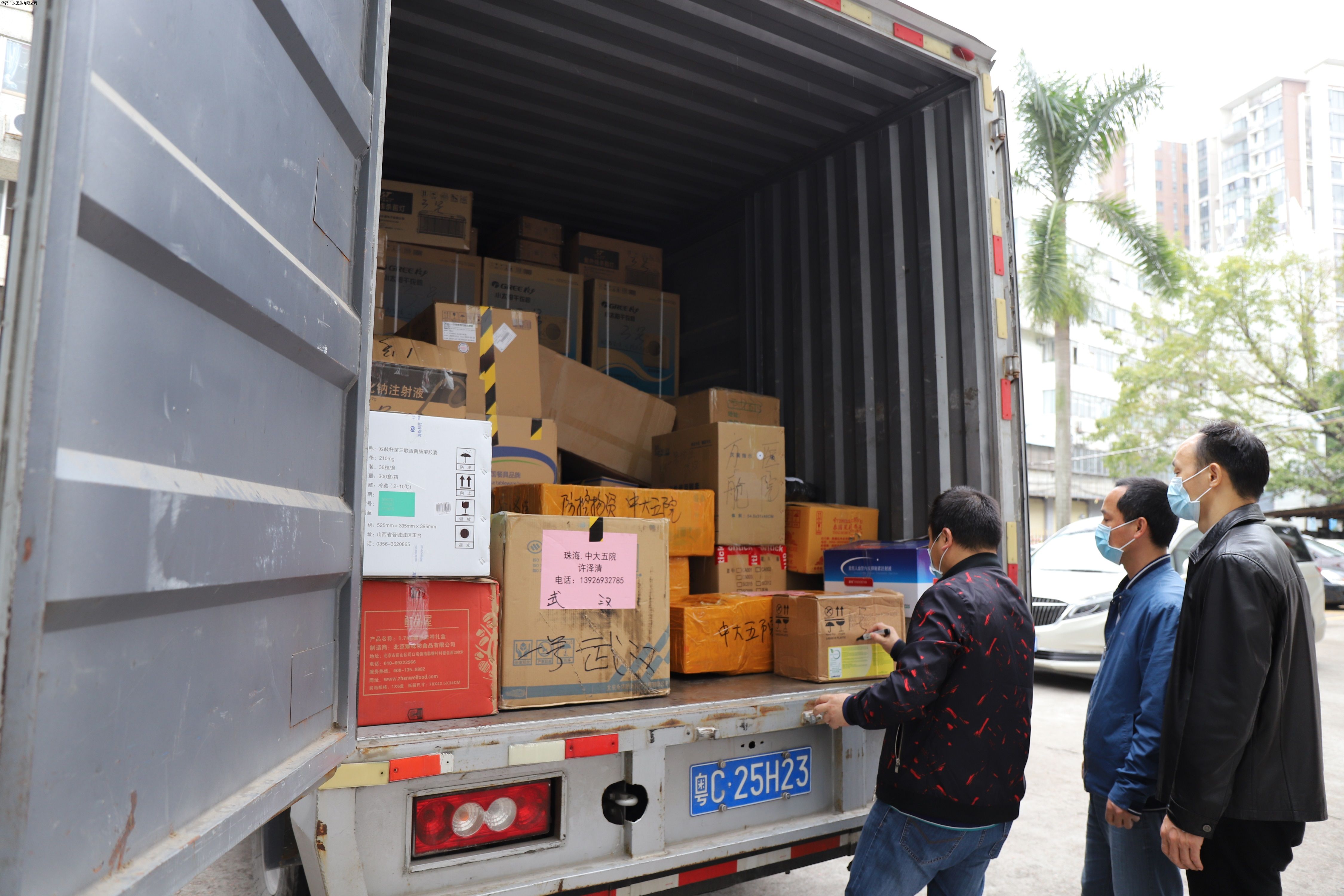2月14日全天,醫(yī)療器械部負(fù)責(zé)人梁服泉書記緊急長途采購提貨;晚上23時(shí)00分,物資迅速打包封箱;凌晨24時(shí)整物資整齊裝車。2月15日上午8時(shí)30分,華潤珠海醫(yī)藥管理團(tuán)隊(duì)及黨支部書記仔細(xì)檢查車輛及人員防護(hù)狀況;醫(yī)療器械部、物流管理部認(rèn)真核對物資及運(yùn)輸路線,華潤珠海醫(yī)藥物流司機(jī)陳樹森、李宏彬佩戴口罩、一次性手套,隨身攜帶防護(hù)服、護(hù)目鏡、免洗消毒液等發(fā)車前往1000公里外的湖北省邊境。